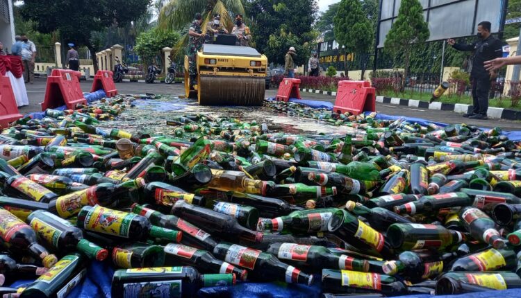 “Hari ini kami melakukan kegiatan pemusnahan barang bukti berupa minuman keras baik itu berupa botol botol maupun dalam bentuk literan,” tuturnya kepada awak media, Kamis, (31/3/2022).