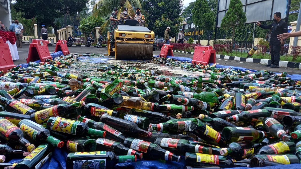 Musnahkan Ribuan Botol Miras, Ini Pesan Kapolres Cilegon