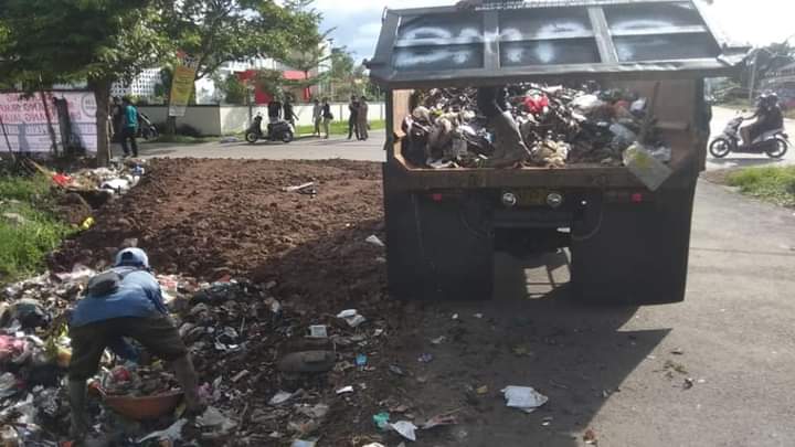 Sejumlah lokasi tanah kosong yang selama ini dijadikan tempat pembuangan oleh warga, sampahnya diangkut menggunakan truk dan pasukan LSM BMPP memasang spanduk peringatan.