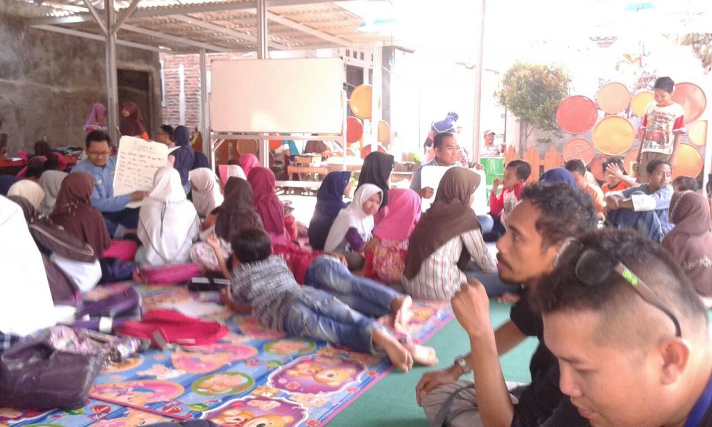 CILEGON – Sejumlah karyawan PT Krakatau Bandar Samudera (KBS) mengunjungi dan ikut serta mengajar pada kegiatan kelas belajar anak-anak di Saung Peradaban yang berlokasi Link Kubang Welut, Kelurahan Samangraya, Kecamatan Citangkil, Minggu (8/4/2018) pagi.