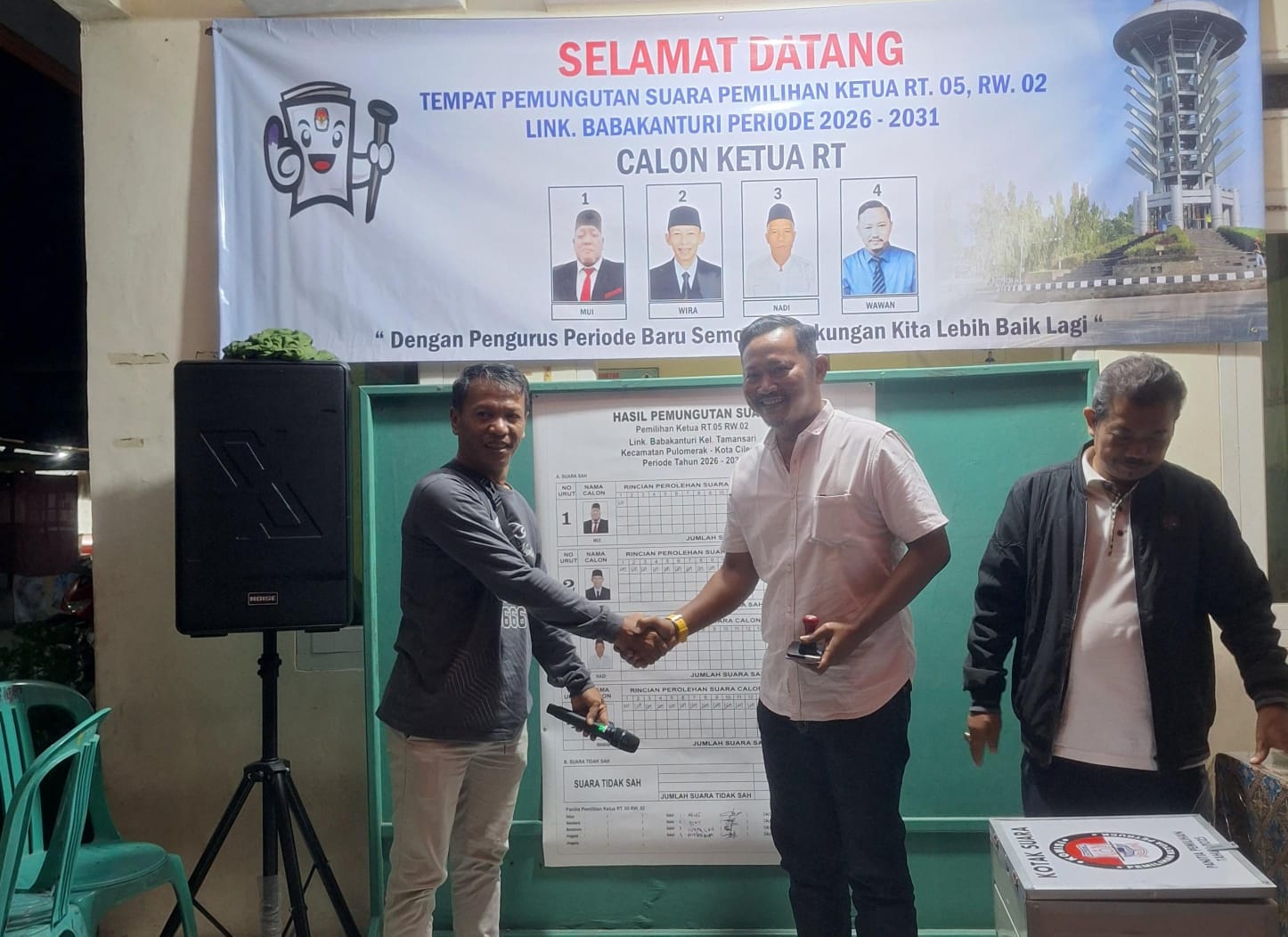 Dengan hasil tersebut, Wawan resmi ditetapkan sebagai Ketua RT 05 RW 02 terpilih untuk periode 2026–2031.