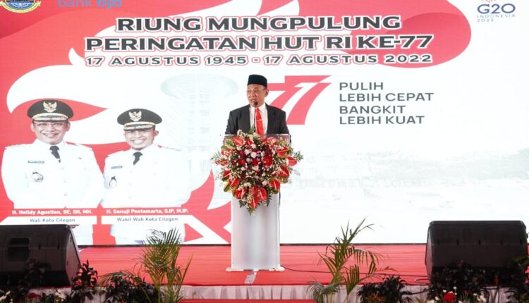 Walikota Cilegon, Helldy Agustian dalam sambutannya menjelaskan HUT RI ke-77 mengangkat tema pulih lebih cepat, bangkit lebih kuat merupakan ekspresi kebangkitan kita dari wabah covid-19.