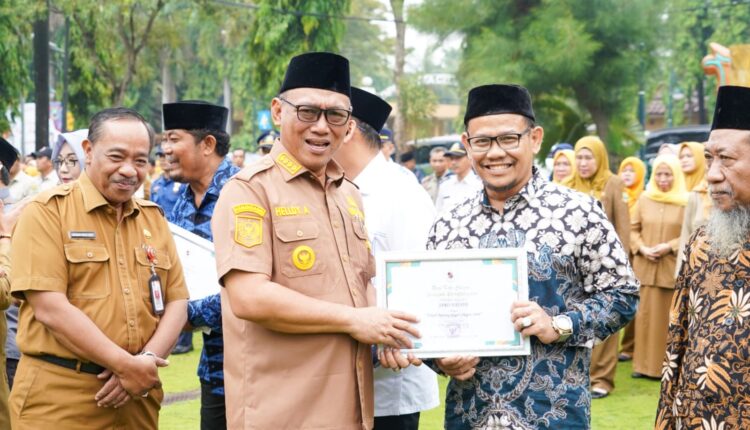 CILEGON – Pemerintah Kota Cilegon kembali memberikan penghargaan kepada pahlawan Geger Cilegon. Penyerahan penghargaan diberikan oleh Wali Kota Cilegon Helldy Agustian kepada para ahli warisnya saat apel pagi, di halaman Kantor Wali Kota Cilegon, Selasa, 9 Juli 2024.