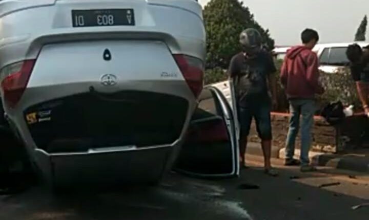 Penumpang Toyota Yaris yang Terbalik di Flyover Cibeber Semuanya Selamat