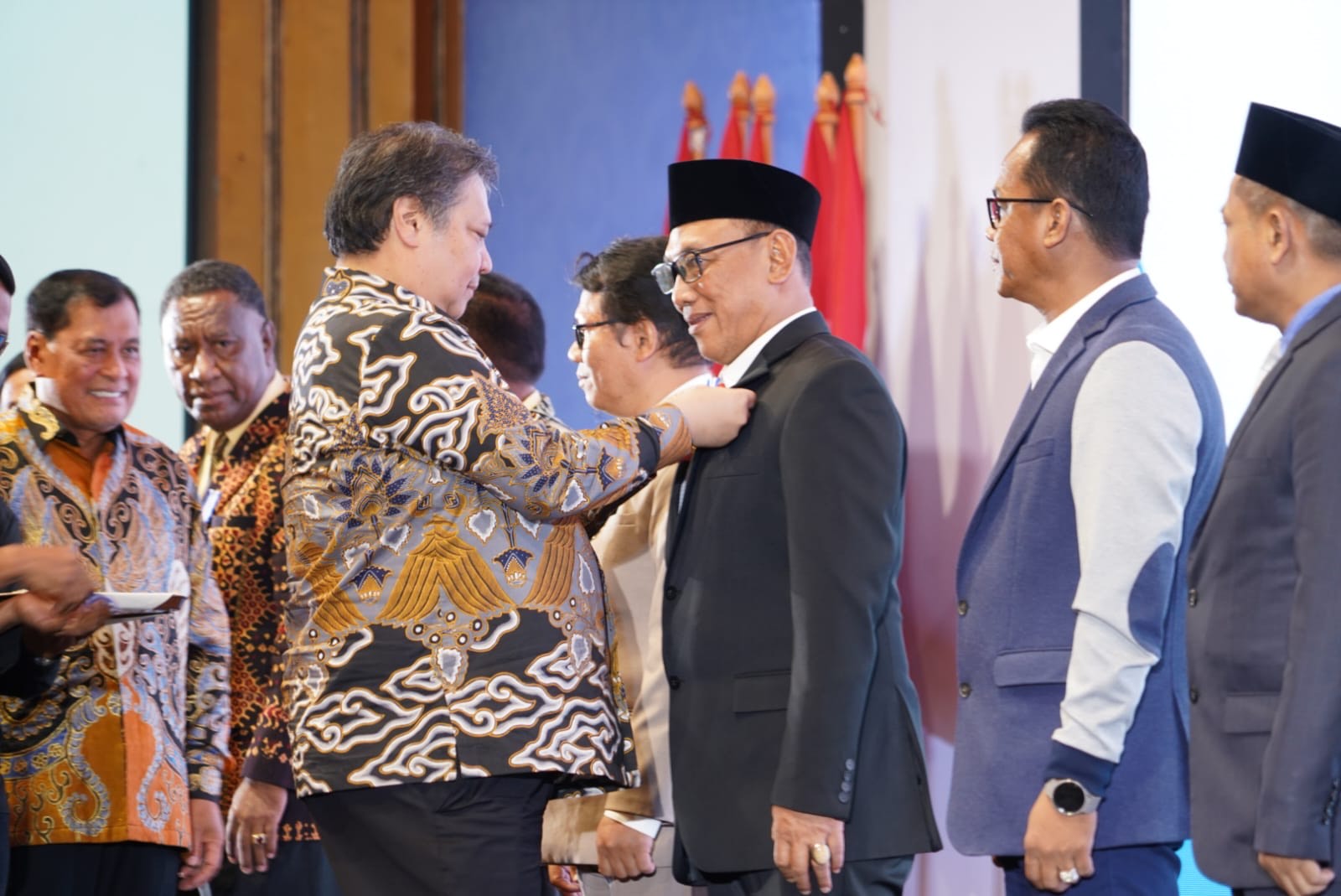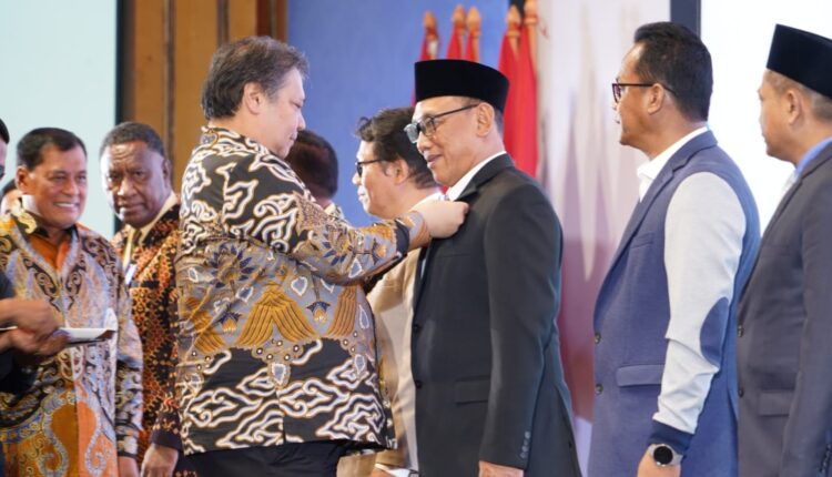 BATAM – Menteri Koordinator (Menko) Bidang Perekonomian Republik Indonesia (RI) Airlangga Hartanto memberikan penghargaan dengan menyematkan Wali Kota Cilegon Helldy Agustian sebagai Tokoh Penggerak Koperasi Utama. Penghargaan diberikan saat Peringatan Hari Koperasi Nasional (Harkopnas) ke- 77 di Ballroom Harmoni One Hotel Batam, Kepulauan Riau, Jumat 12 Juli 2024.