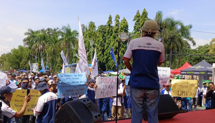 “Miris masih ada upah harian di perusahaan BUMN yang pabriknya dekat dengan DPRD dengan Polres dengan Kodim,” kata Muhari dalam orasinya.