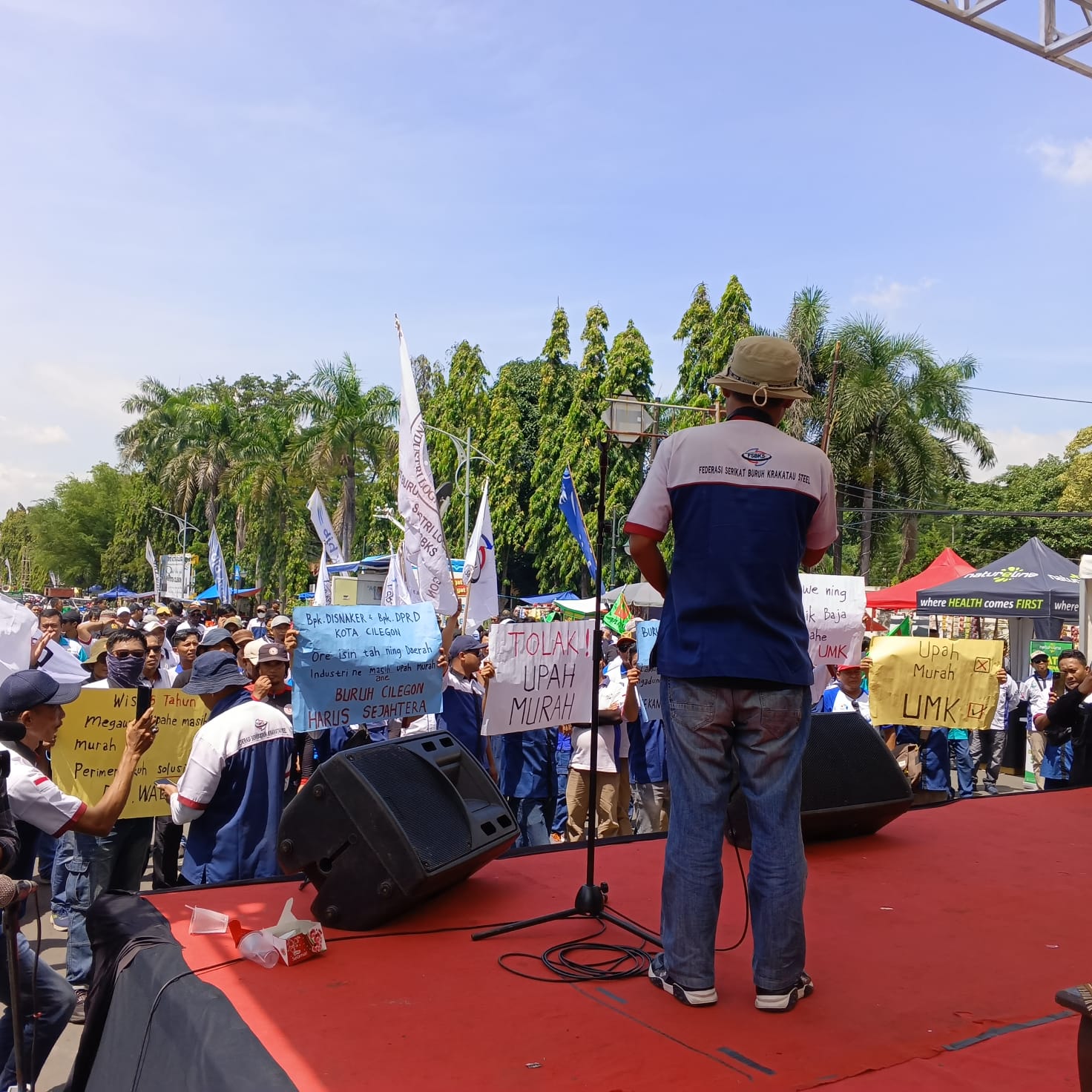 Beberapa isu yang menjadi sorotan dalam orasi beberapa ketua federasi buruh adalah berkaitan dengan kasus-kasus pemutusan hubungan kerja (PHK) oleh perusahaan dan upah tidak layak yang masih terjadi di industri di Kota Cilegon.