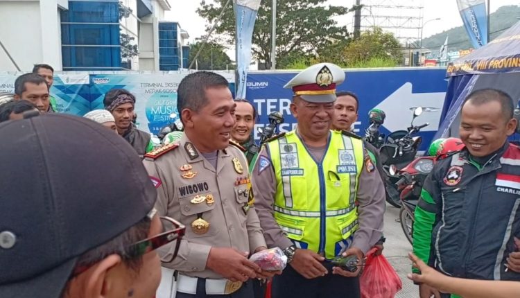 CILEGON – Membantu sesama di bulan Ramadhan, puluhan Ojek online (Ojol) berbagi takjil gratis ke petugas gabungan Polri, TNI hingga Dishub yang mengatur arus mudik menuju Pelabuhan Merak,.