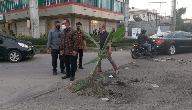Pohon Pisang Ditanam di Jalan, Walikota Cilegon Langsung Turun Lapangan