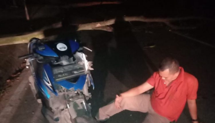 CILEGON – Pengendara motor yang bernama Asep Saefudin (30), Tenaga Hanorer di Kelurahan Ramanuju, Kecamatan Purwakarta mengalami kecelakaan lalu lintas setelah menabrak batang pohon tumbang di ruas jalan Propelat Bumi Perkemahan Komplek Krakatau Steel, Kelurahan Kotabumi, Kecamatan Purwakarta pada Senin (11/3) dinihari , sekitar jam 02.00 WIB.