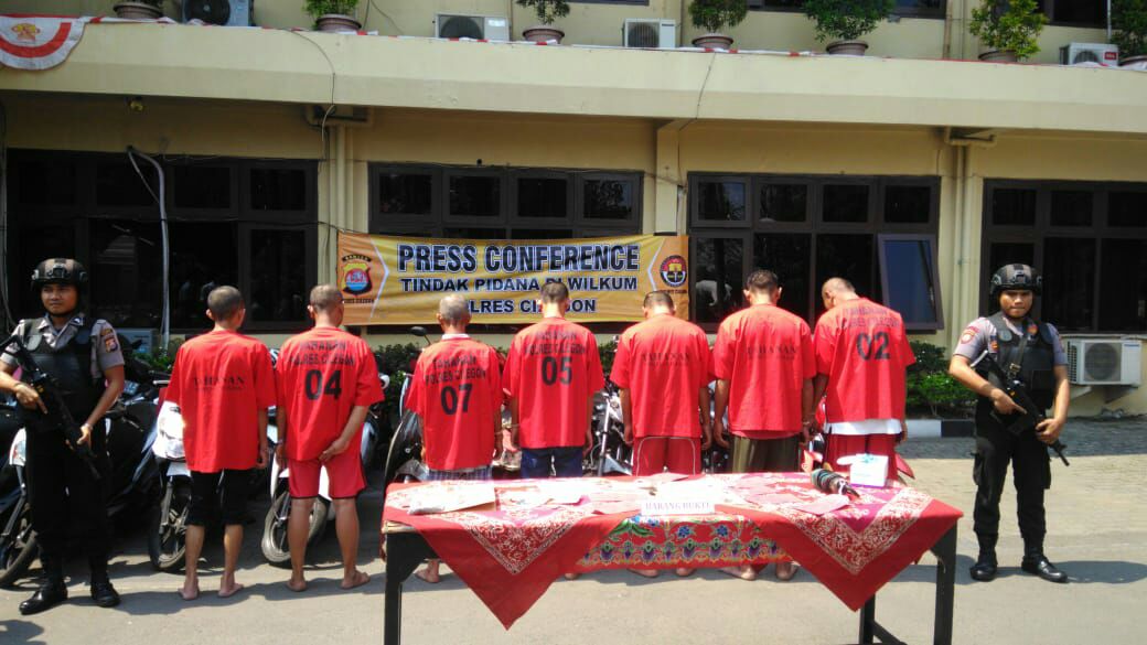 Sebanyak 7 pelaku, 46 motor, berikut barang bukti dihadirkan di hadapan puluhan wartawan. Turut hadir Kapolres Cilegon AKBP Rizki A Prakoso, Wakapolres Kompol Fredi Harbakti, dan Kasat Reskrim AKP Dadi Pradana.