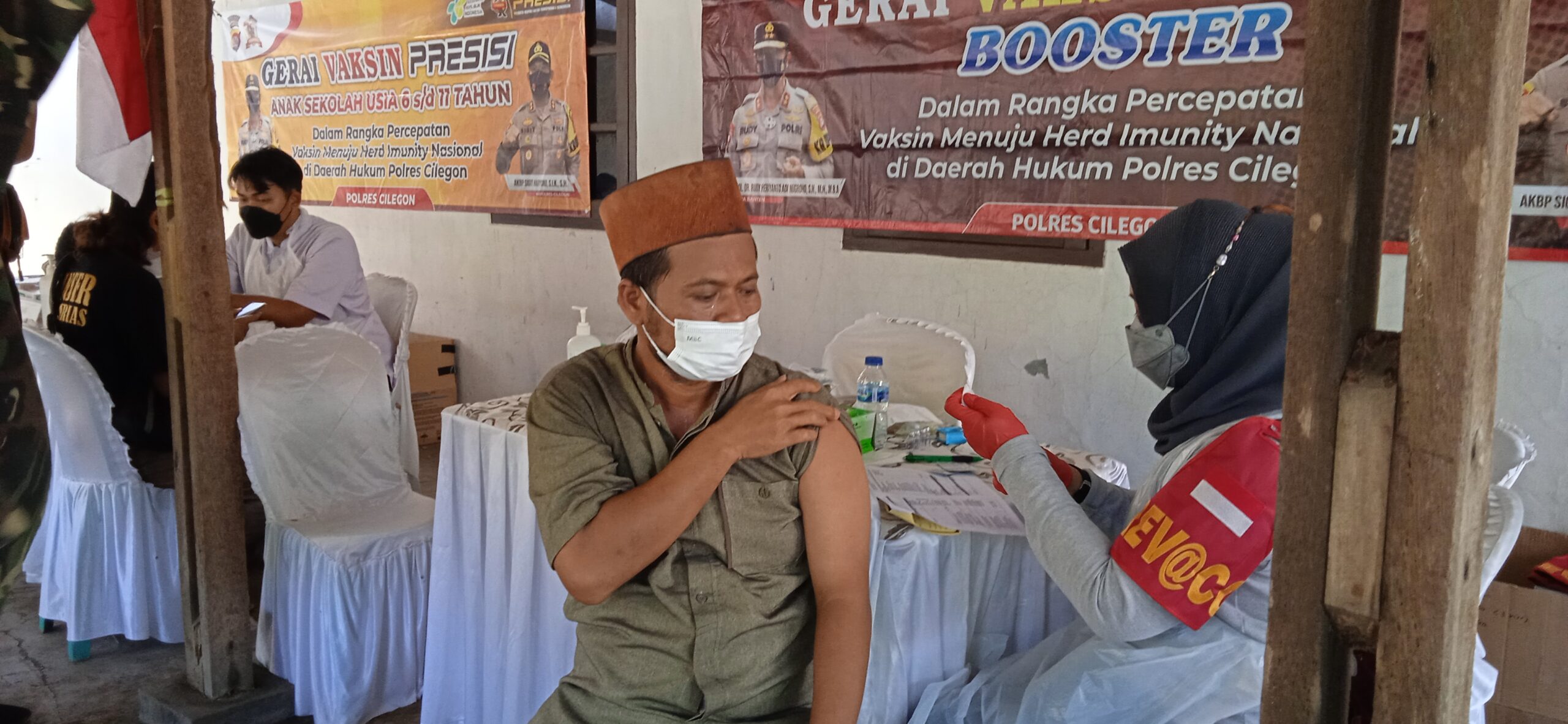 “Vaksin ini dari Dokkes Polres Cilegon, kami Tergetkan 300 orang, kami sediakan 300 vaksin,” ucap salah satu petugas vaksinasi kepada Fakta Banten.