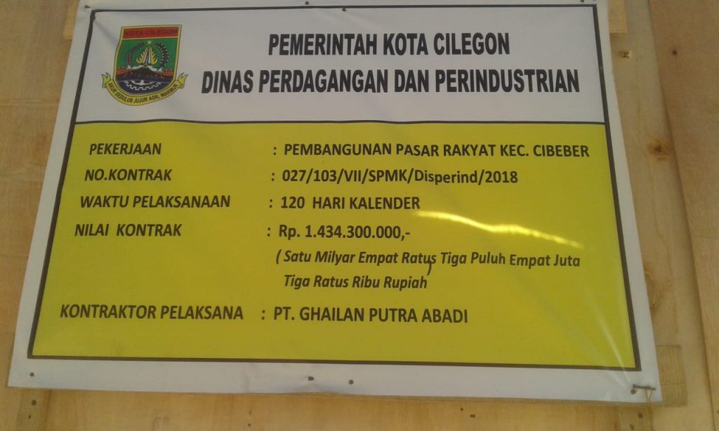 CILEGON – Pembangunan Pasar Rakyat Kecamatan Cibeber yang dilakukan oleh Dinas Perindustrian dan Perdagangan (Disperindag) Kota Cilegon yang dikerjakan oleh pihak ketiga yakni kontraktor PT Ghailan Putra Abadi, ditenggarai terdapat kejanggalan dalam pelaksanaannya.