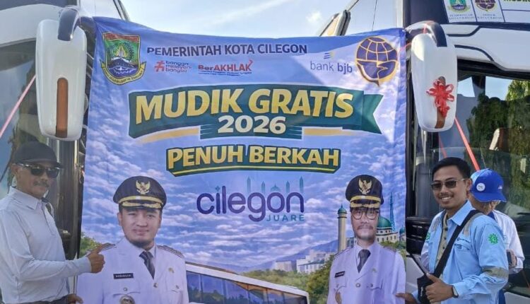 Pelepasan peserta mudik gratis tersebut dilakukan di depan Kantor Wali Kota Cilegon, Minggu (15/3/2026).