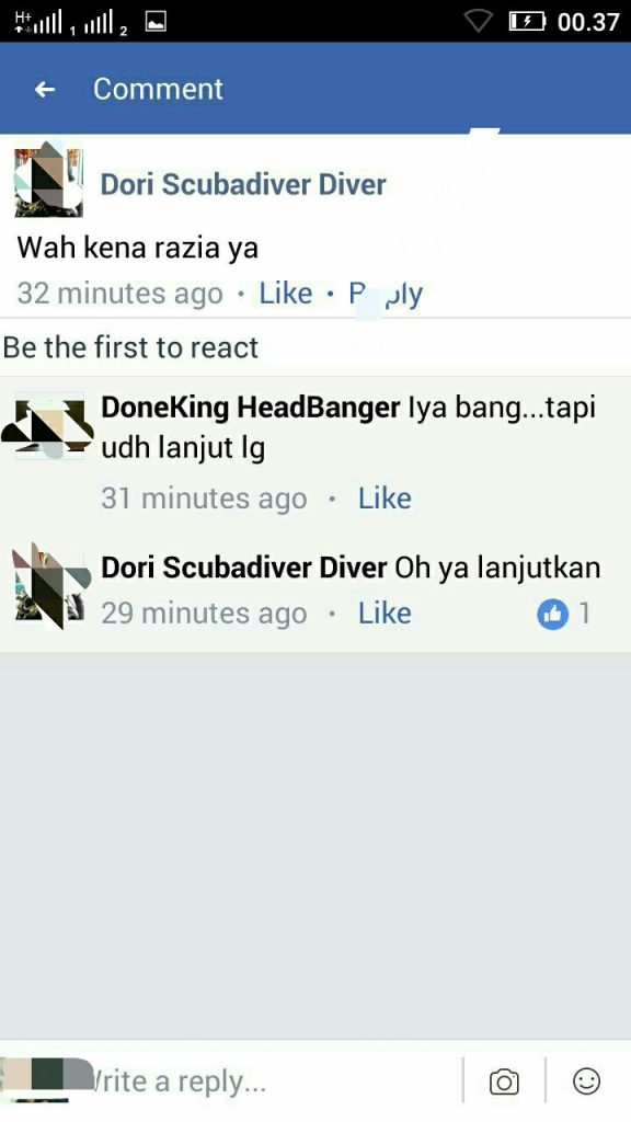 Postingan ini berlanjut komentar susulan dari akun @Dori Scrubadiver Diver: “Wah kena razia ya”.