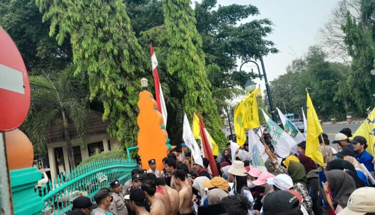 Pantauan di lokasi, aksi puluhan mahasiswa yang berasal dari Pergerakan Mahasiswa Islam Indonesia (PMII), Kesatuan Aksi Mahasiswa Muslim Indonesia (KAMMI), Ikatan Mahasiswa Cilegon (IMC), dan Satuan Pelajar Mahasiswa Pemuda Pancasila (Sapma PP).