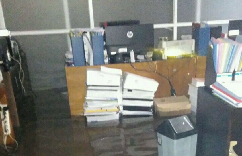 Beberapa lokasi yang kena dampak banjir ialah ruang keuangan dan ruang komisi.