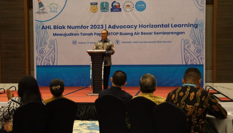 BIAK NUMFOR – Helldy Agustian selaku Sekretaris Umum (Sekum) Aliansi Kabupaten-Kota Peduli Sanitasi (AKKOPSI) yang juga menjabat Walikota Cilegon membuka acara Advokasi Horizontal Learning (AHL) Biak Numfor 2023 di Swiss-Belhotel Cendrawasih Biak, Selasa 14 November 2023. Acara yang dihadiri Kementerian Kesehatan RI dan United Nations Children’s Fund (Unicef) itu dalam rangka mewujudkan Tanah Papua Stop Buang Air Besar Sembarangan (BABS).