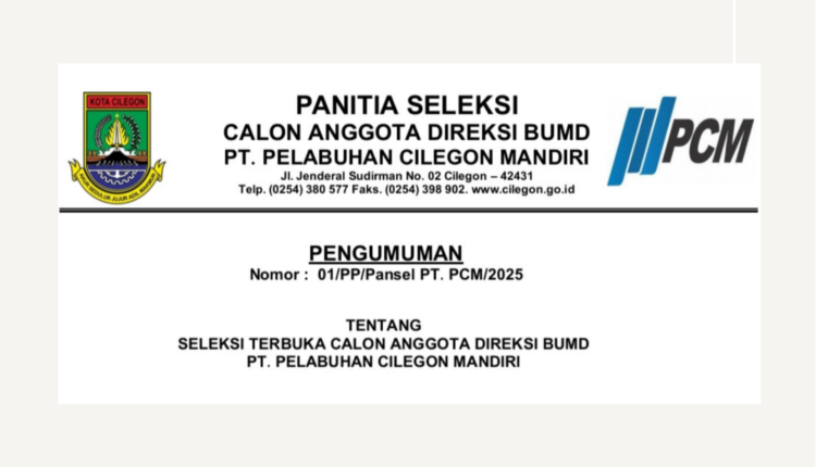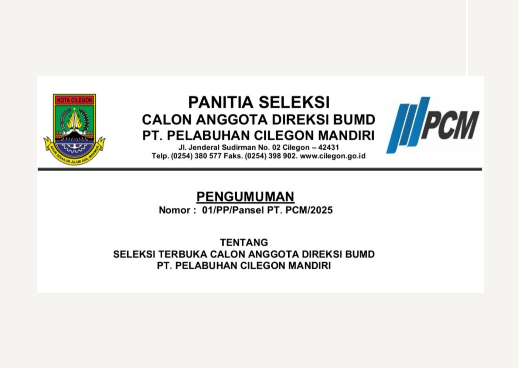SELEKSI TERBUKA CALON ANGGOTA DIREKSI BUMD PT PELABUHAN CILEGON MANDIRI