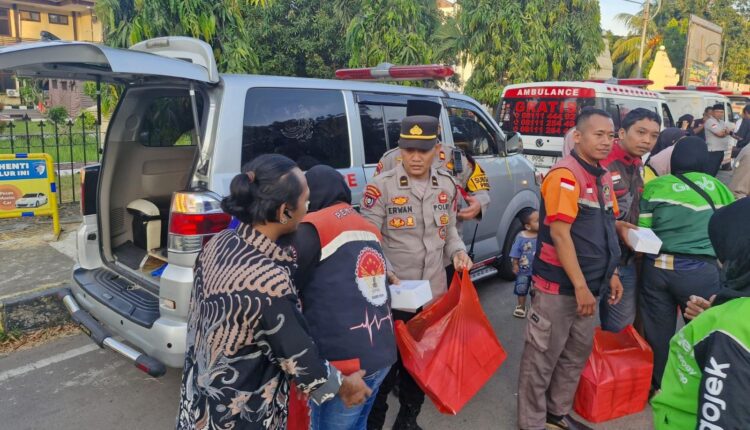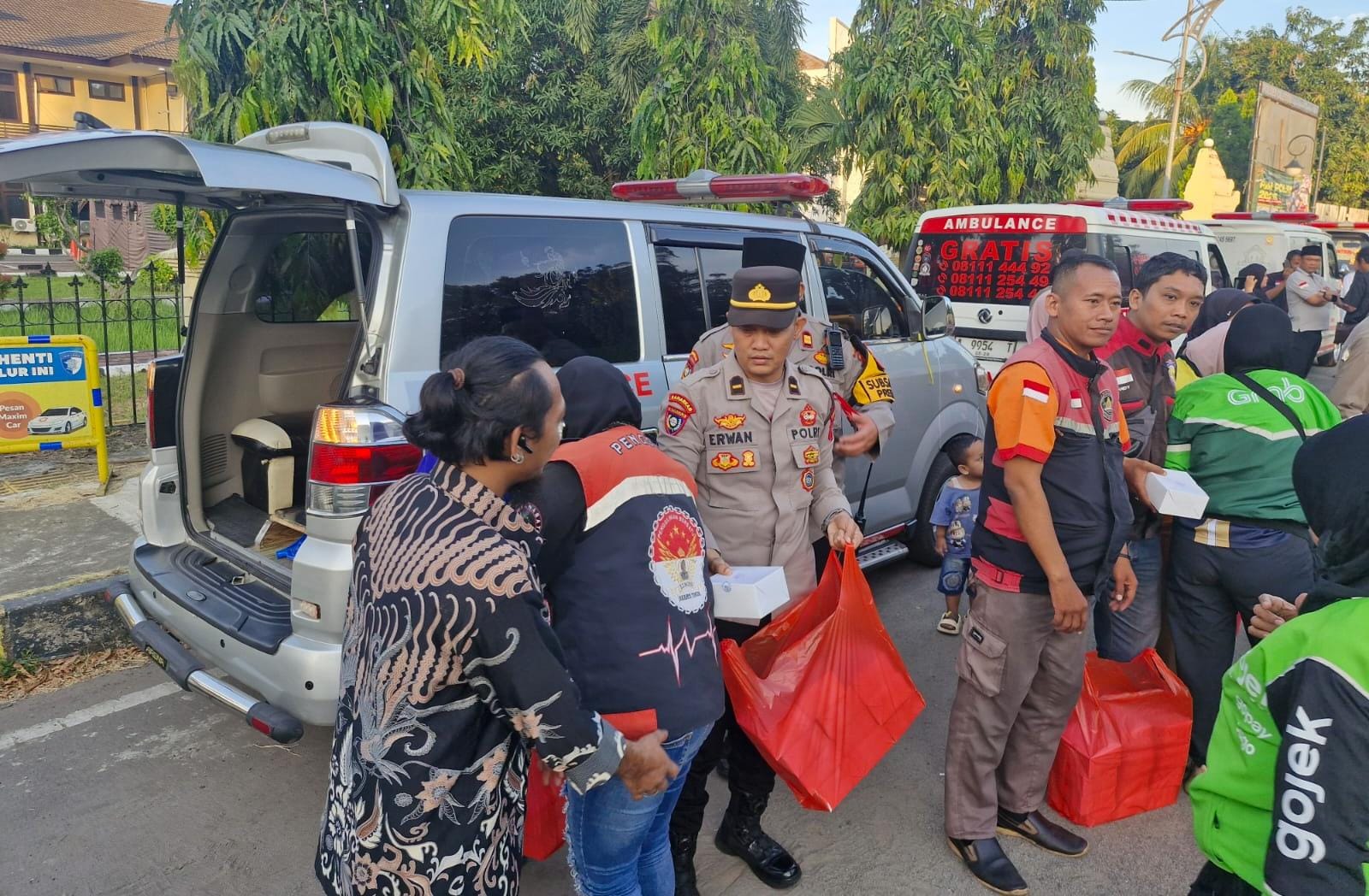 CILEGON – Paguyuban Driver Ambulance Indonesia (PDAI) Kota Cilegon bersama Polres Cilegon membagikan ratusan paket takjil kepada masyarakat yang melintas di jalan pada bulan suci Ramadan di depan Kantor Polres Cilegon, Minggu (15/3/2026).