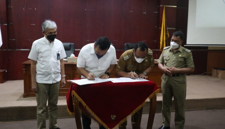 CILEGON – Pemerintah Kota Cilegon melakukan penandatanganan Nota Kesepahaman dengan PT Krakatau Steel terkait pengembangan usaha yang berlokasi berlokasi di Aula Setda II Kota Cilegon, Selasa (01/03/2022).