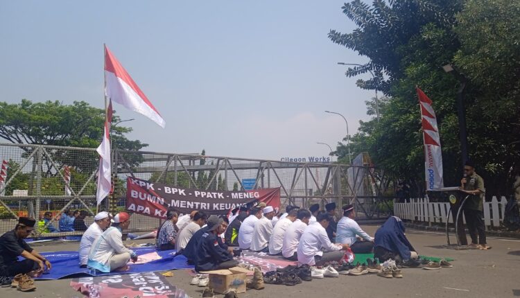 Tidak Diizinkan Masuk, Warga Cilegon Sholat Jum’at Depan Gerbang PT Krakatau Posco