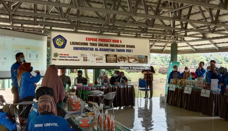 CILEGON – Universitas Al-Khairiyah launching toko online inkubator yang dinaungi oleh Lembaga Penelitian dan Pengabdian kepada Masyarakat (LPPM) dirangkai dengan kegiatan expose produk dari hasil kegiatan Kuliah Kerja Mahasiswa (KKM) di Pendopo STIT Al-Khairiyah, Kamis (09/09/2021).