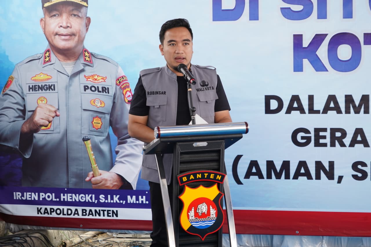 CILEGON– Wali Kota Cilegon Robinsar menghadiri kegiatan penanaman 1.000 pohon yang digelar Polda Banten melalui Polres Cilegon, kegiatan ini dilaksanakan dalam rangka mendukung gerakan Indonesia Asri (Aman, Sehat, Resik, dan Indah) bertempat di Situ Rawa Arum, Link Tegal Wangi, Jumat 17 April 2026.