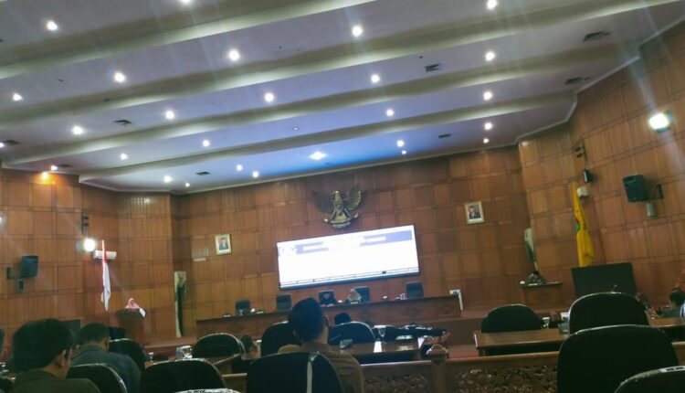 CILEGON – Walikota Cilegon Helldy Agustian menghadiri Rapat Paripurna Dewan Perwakilan Rakyat Daerah (DPRD) Cilegon terkait Persetujuan Penetapan Rancangan Peraturan Daerah atau Raperda tentang Pengelolaan Keuangan Daerah di ruang rapat Paripurna DPRD Kota Cilegon, Senin (15/8/2022).