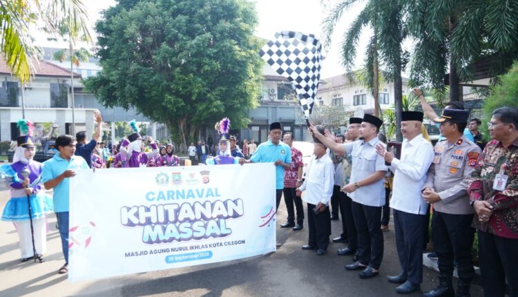 CILEGON – Walikota Cilegon Robinsar melepas ratusan peserta khitanan massal yang di gelar oleh pengurus Masjid Agung Nurul Ikhlas bekerjasama dengan Badan Amil Zakat Nasional (Baznas) Kota Cilegon dalam rangka memperingati Maulid Nabi Muhammad SAW. Pelepasan peserta berlangsung di Halaman Kantor Walikota Cilegon, Jumat, (26/9/2025).