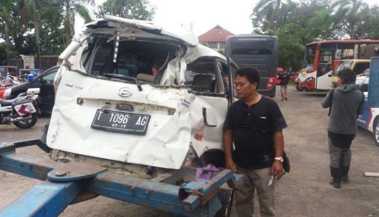 Akibat tertabrak kondisi body mini bus tersebut ringsek dan kaca depan pecah berantakan.