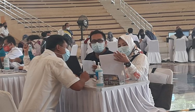 SERANG – Sebanyak 10.000 tenaga honorer yang bertugas di lingkungan Pemprov Banten melaksanakan vaksinasi Covid-19 termin pertama. Vaksinasi bertempat di Gedung Plaza Aspirasi, Kawasan Pusat Pemerintahan Provinsi Banten (KP3B), Curug, Kota Serang, Rabu (25/3/2021).
