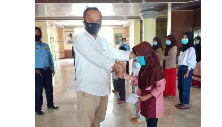 SERANG – Menjelang akhir tahun 2020, Sekretariat DPRD Banten atau Setwan memberikan santunan kepada 41 anak yatim piatu yang ada di sekitar Kawasan Pusat Pemerintahan Provinsi Banten (KP3B), Curug, Kota Serang, Jumat (4/12/2020).