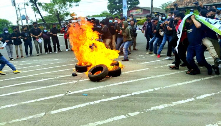 SERANG – Sekitar 105 mahasiswa yang tergabung dalam Keluarga Mahasiswa Lebak (Kumala) melakukan aksi unjuk rasa di depan halaman Kawasan Pusat Pemerintahan Provinsi Banten (KP3B), Curug, Kota Serang, Senin (4/10/2021).