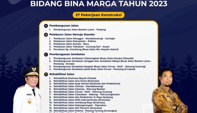 “Setidaknya terdapat 27 pekerjaan konstruksi jalan dan jembatan yang ditargetkan rampung,” kata Kepala DPUPR Banten, Arlan Marzan kepada wartawan, pada Selasa, (14/3/2023).