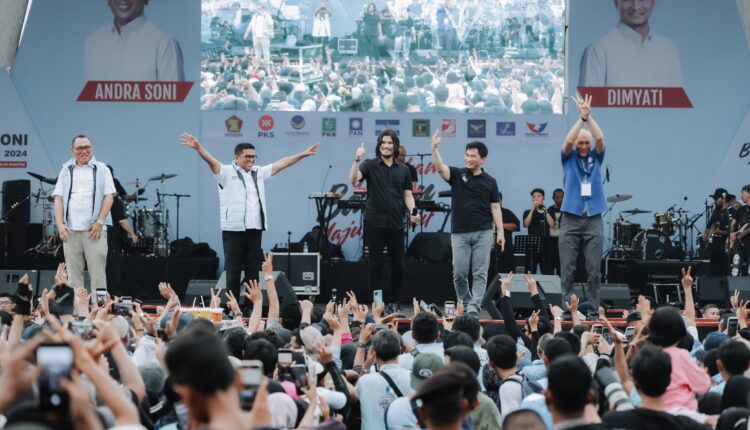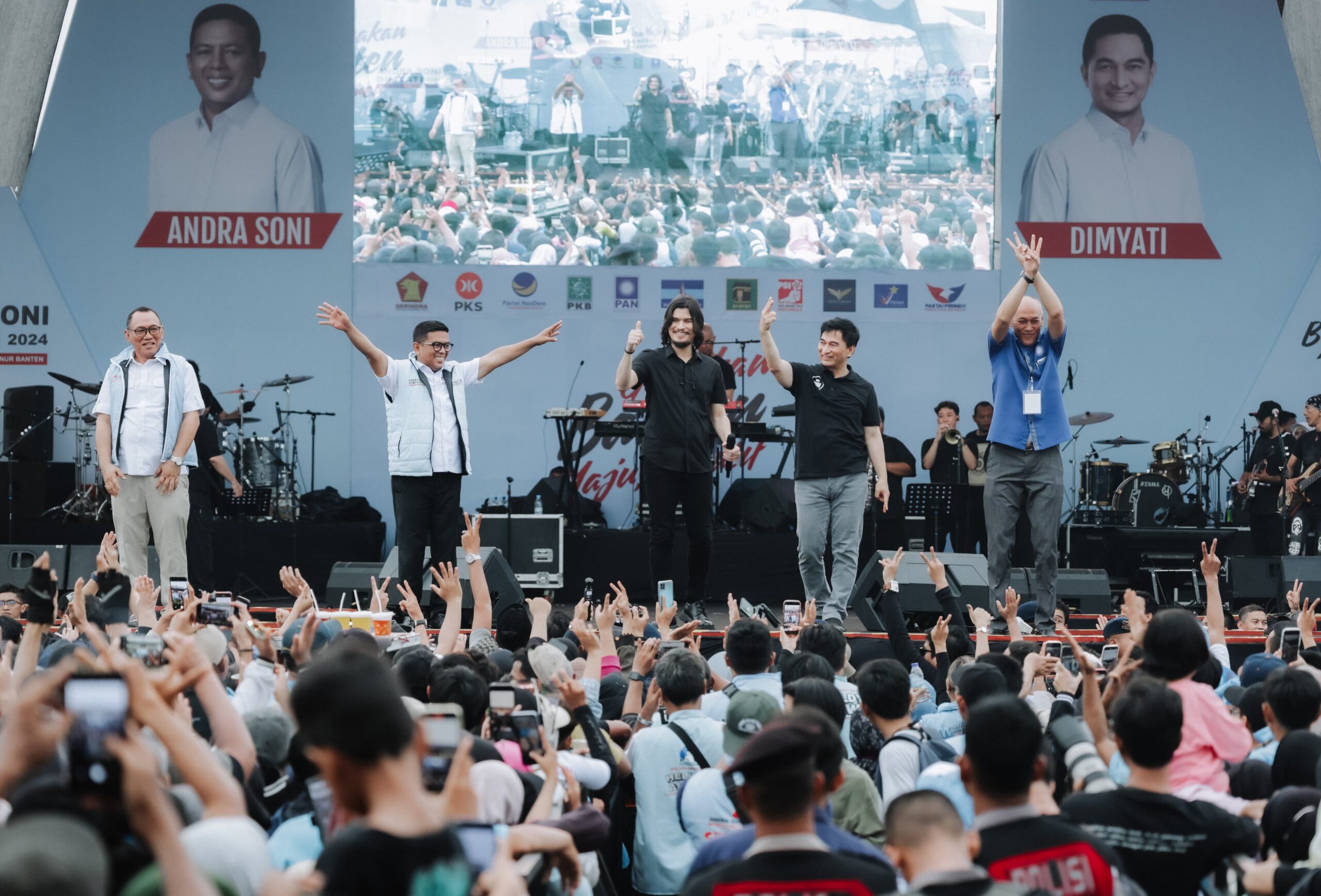 Diketahui, kampanye akbar Andra Soni-Dimyati di Lapangan BCA Kota Cilegon dipenuhi ribuan massa. Selain orasi dari perwakilan pimpinan Parpol, acara juga dimeriahkan dengan penampilan Dewa 19, Charly Van Houten, Hercules, Marchel Widianto, dan lain-lain. (*/Rijal)