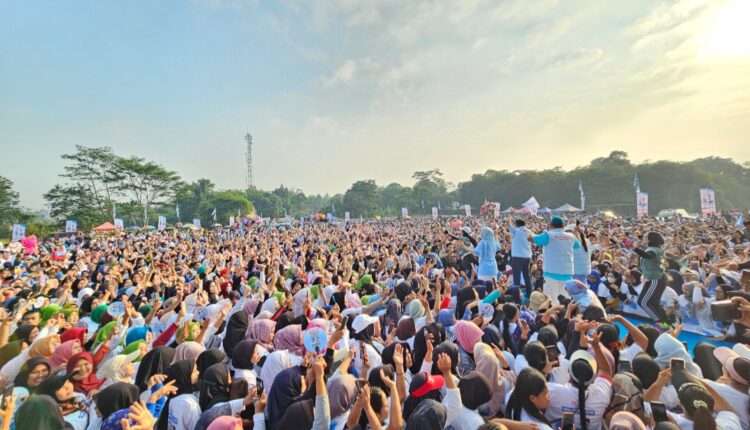 SERANG – Ribuan warga Kabupaten Serang senam bahagia bareng bakal calon Gubernur Banten, Andra Soni dan bakal calon Bupati dan Wakil Bupati Serang, Ratu Rachmatu Zakiyah-Najib Hamas, di dua titik di Kabupaten Serang. Titik pertama digelar di Lapangan Cigodeg, Tambiluk, Petir, dan kedua di Sukamenak, Cikeusal, pada Jumat, (20/9/2024).