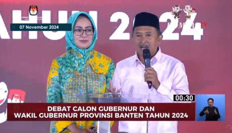Saat tampil bersama calon gubernur pasangannya, Airin Rachmi, dalam Debat Calon Gubernur dan Wakil Gubernur Banten putaran kedua, Kamis malam, (7/11/2024), di Hotel Bidakara, Jakarta, Ade menyampaikan pandangannya terkait isu stunting.