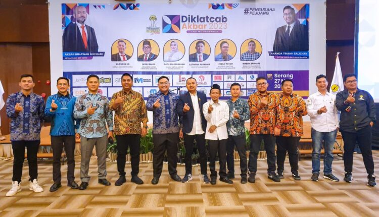 SERANG – Badan Pengurus Daerah (BPD) Himpunan Pengusaha Muda Indonesia (HIPMI) Provinsi Banten menggelar Diklatcab Akbar HIPMI Se-Provinsi Banten bertempat di Hotel Horison, Kota Serang, Sabtu (27/5/2023).