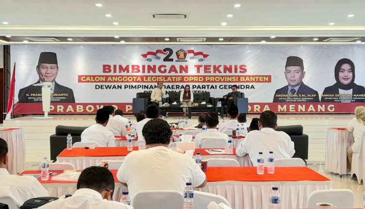 SERANG – DPD Partai Gerindra Provinsi Banten menggelar Bimbingan Teknis (Bimtek) untuk calon anggota legislatif (Caleg) DPRD Provinsi Banten, di Kota Serang, pada Sabtu, (2/9/2023).