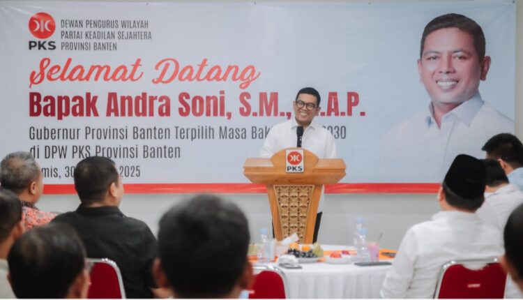 SERANG – Ketua DPD Partai Gerindra Provinsi Banten sekaligus calon Gubernur Banten terpilih, Andra Soni bersilaturahmi ke Kantor DPW PKS Provinsi Banten, Kota Serang, pada Kamis, (30/1/2025).