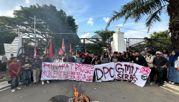 GMNI Cabang Serang dalam aksinya, menduga Al Muktabar melakukan korupsi biaya penunjang operasional (BPO) sebesar Rp39 miliar.