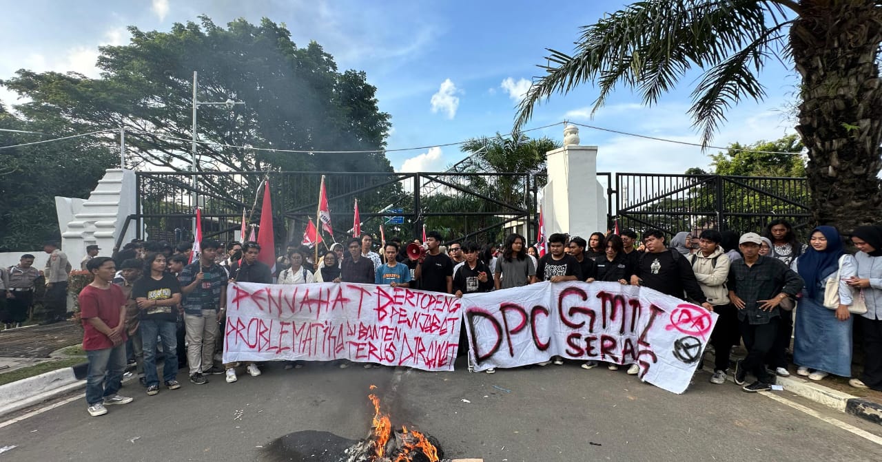 “Kasus penyelewengan dana BPO oleh Al Muktabar, menjadi rentetan kasus kasus korupsi di Banten. Kami menuntut adili dan tangkap Al Muktabar beserta kroni-kroninya,” ujar koordinator aksi, R. Fauzul Hakim, di depan gerbang KP3B, Rabu (19/2/2025)