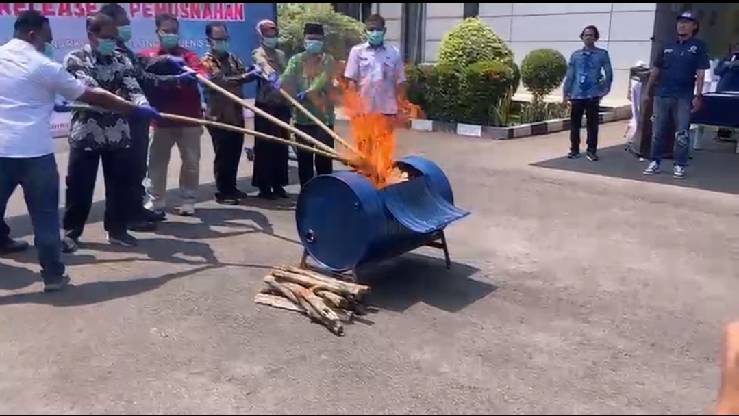 SERANG – Badan Narkotika Nasional Provinsi (BNNP) Banten memusnahkan barang bukti ganja kering seberat hampir dua kilogram.