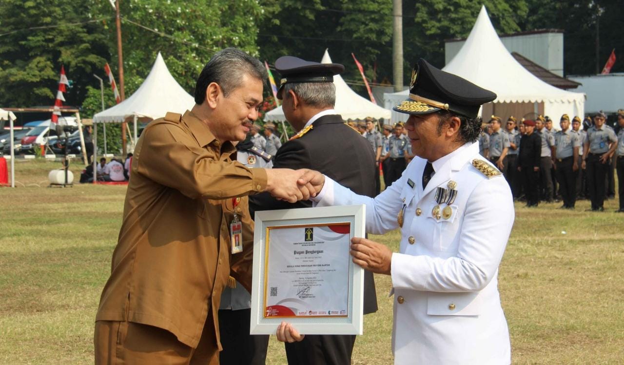 Penghargaan diterima oleh Kepala Dindikbud Povinsi Banten Tabrani, pada Peringatan Hari Kementerian Hukum dan HAM atau Hari Dharma Karya Dhika (HDKD) Ke-78 Tahun 2023 di Lembaga Pembinaan Khusus Anak Kelas 1 Tangerang, Kelurahan Sukaasih, Kecamatan Tangerang, Kota Tangerang, Senin (21/8/2023).