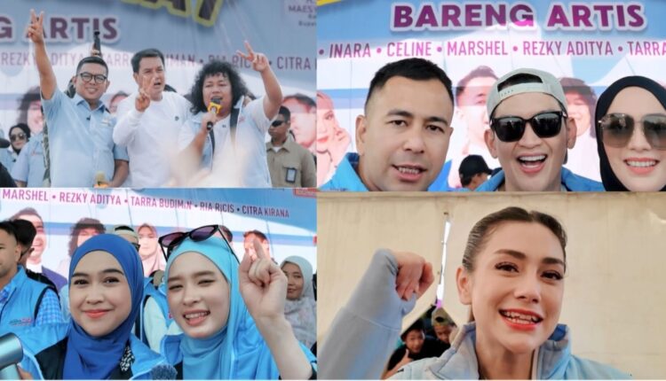 Sejumlah selebritis yang menghadiri acara Senam Gemoy di Lapangan Bola Bendung, Desa Sumur Bandung, Kecamatan Jayanti, Kabupaten Tangerang, Banten, Rabu (9/10/2024), yakni Raffi Ahmad, Inara Rusli, Celine Evangelista, Rezky Aditya, Tarra Budiman, Ria Ricis, Citra Kirana dan Marshel.