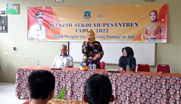 PANDEGLANG – Dinas Pemberdayaan Perempuan Perlindungan Anak, Kependudukan dan Keluarga Berencana (DP3AKKB) Provinsi Banten dan Pusat Pelayanan Terpadu Perlindungan Perempuan dan Anak (P2TP2A) melakukan road show sosialisasi pencegahan kekerasan perempuan dan anak di beberapa sekolah dan Pondok Pesantren di Kabupaten Pandeglang.
