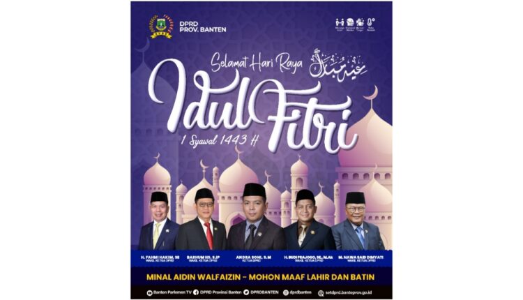 BANTEN DPRD Banten Mengucapkan Selamat Hari Raya Idul Fitri 1443 Hijriyah Oleh Redaksi Pada 30 Apr 2022 Bagikan AdvertorialDPRD BantenIdul fitri 1443 Hijriyah Bagikan FacebookTwitterWhatsAppFacebook MessengerTelegram