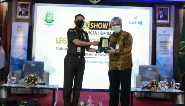 SERANG – Untuk meningkatkan wawasan dalam bidang hukum dan Bank Bjb bekerja sama dengan Kejaksaan Tinggi (Kejati) Banten menggelar talkshow penerangan hukum dengan yang bertajuk “Legal Awareness Forum: Implementasi Governance, Risk & Complience (GRC) dalam Operasional Perbankan”. Acara digelar di Aula Kejaksaan Tinggi Banten, Kota Serang, Kamis (18/3/2021) secara online dan offline.