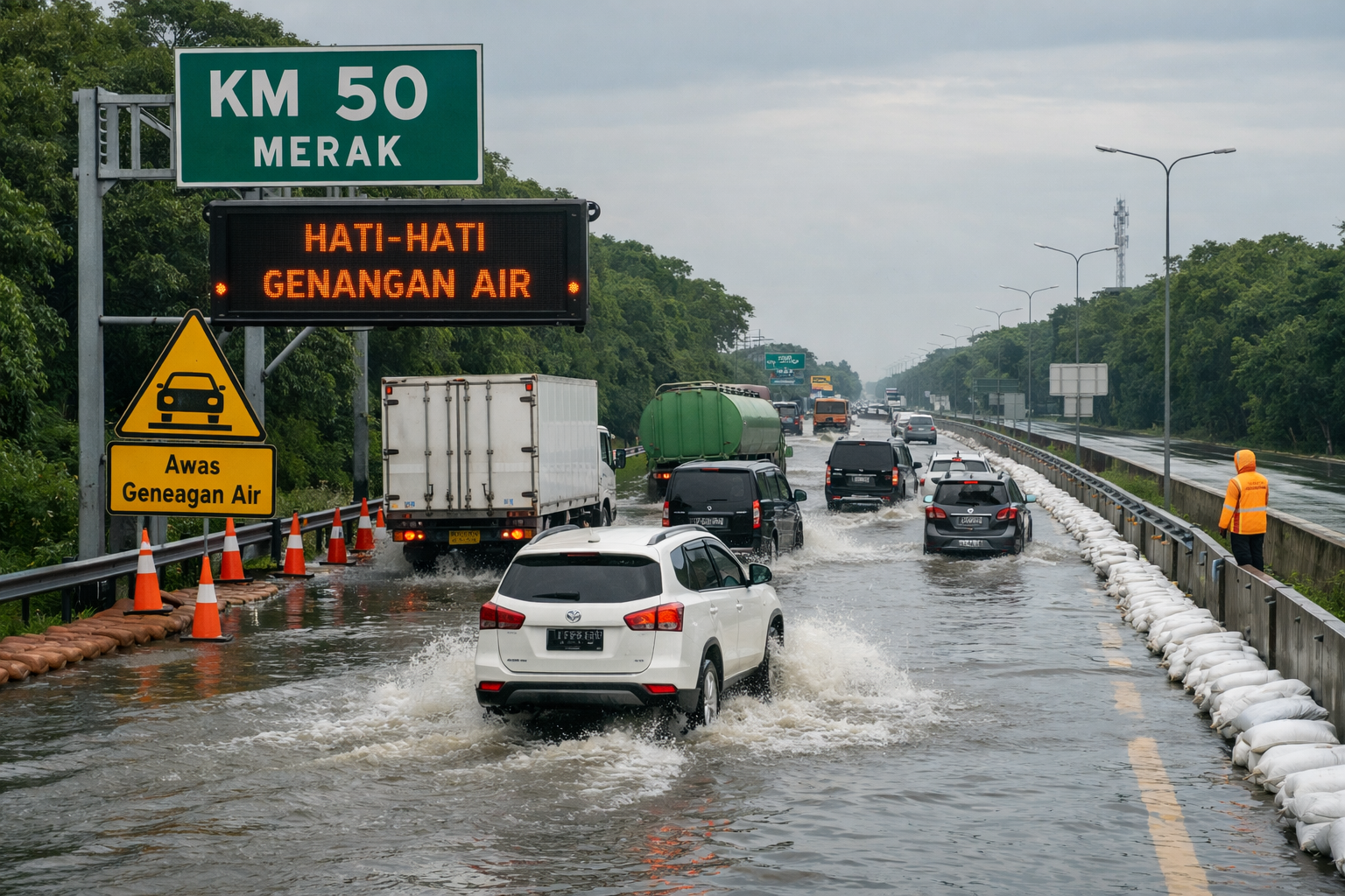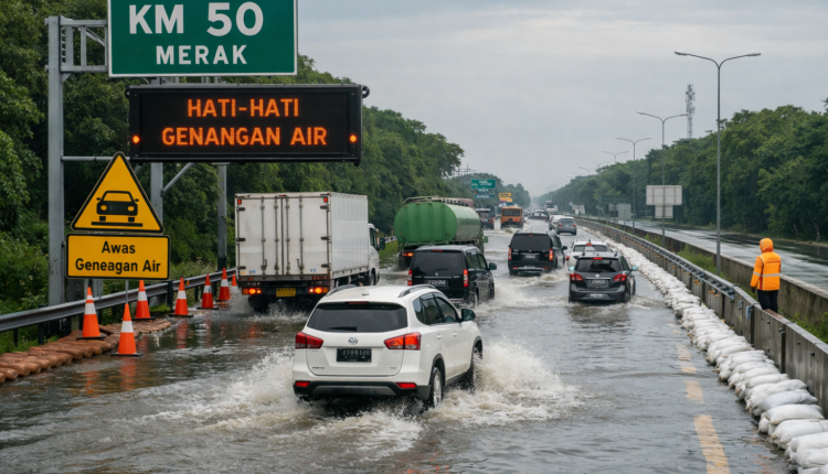 Genangan Air di KM 50 Tol Tangerang–Merak Masih Bisa Dilintasi, Pengguna Jalan Diminta Waspada
